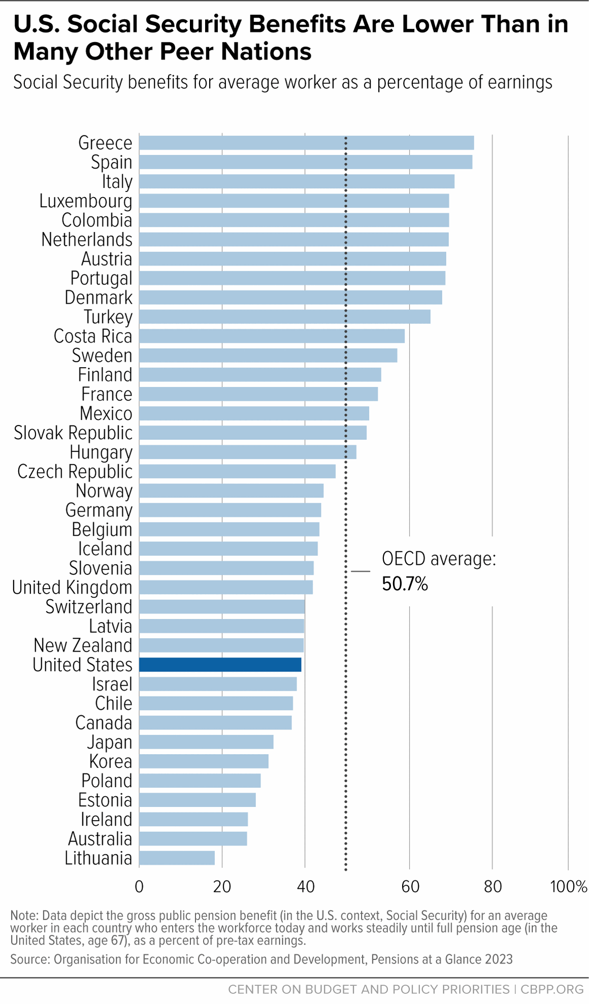 Also, this is not some lucrative program exclusive to the United States. We actually rank in the bottom 4 developed countries in how much we supplement income after retirement. The global average among developed countries is 50%, the United States only averages 40%.