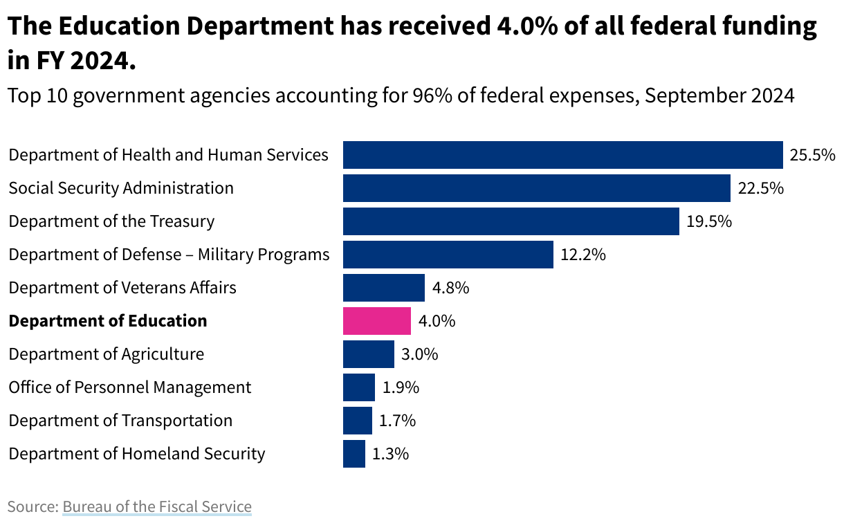 The Department of Education is the backbone of public schools that allows for the baseline of quality in education to meet an equal standard for all kids. Ensuring no one is left behind because of income or disability, race or gender.