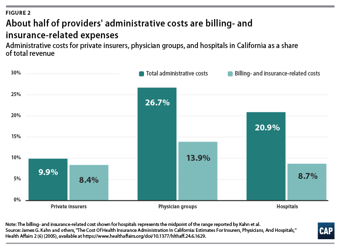 The best answer is administrative costs and profits. Right now, healthcare providers in the United States spend roughly $496 billion on billing and insurance-related costs, according to Center for American Progress estimates.